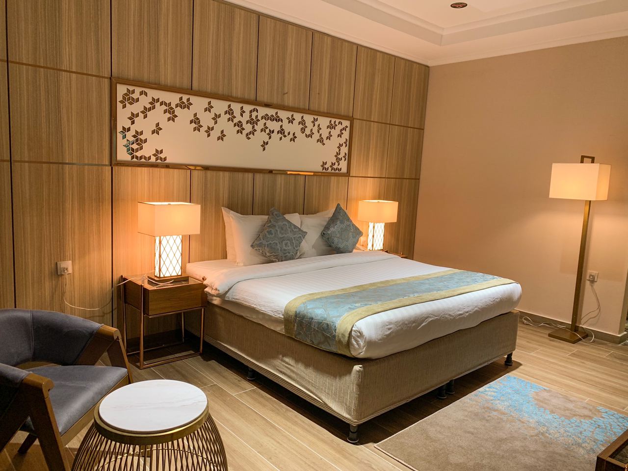 تتميز جميع الغرف بأرضيات مغطاة بالسجاد المطبوع وأرضيات من البلاط، وتشتمل جميعها على تلفزيون بشاشة مسطحة وثلاجة ، ويحتوي الجناح على غرفة معيشة